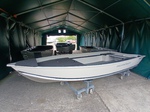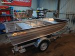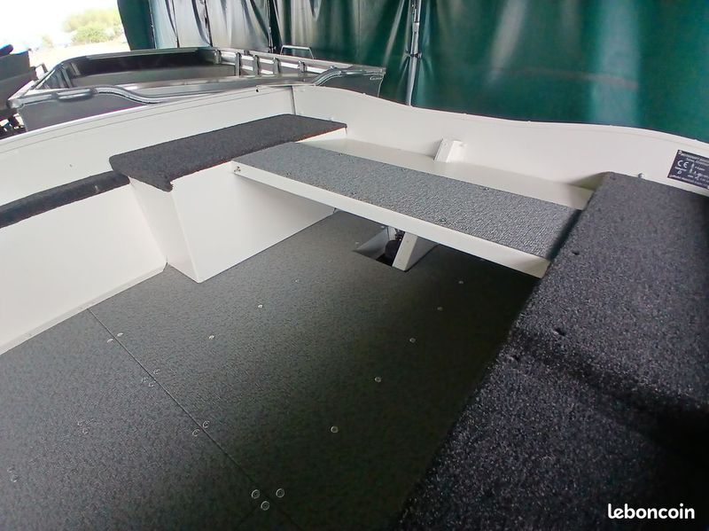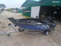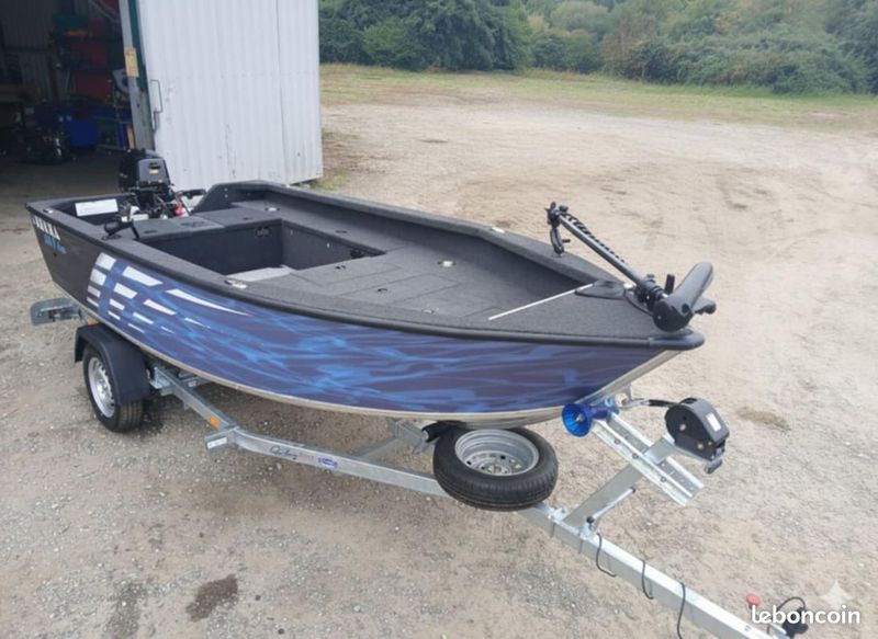 Caractéristique Bateau : Longueur 4.00m / Largeur 1.80m / Nombre de personnes 4 Coque aluminium soudé 3mm / 5 coffres de rangement + 1 coffre à cannes / panel électrique 6 inter / prises usb, prise allume-cigare / coupe batterie / câblage complet / feux de navigation (arrière) / pompe de cale électrique / 2 embases siège / 4 taquets inox rétractables / 3 portes-gobelets inox / échelle de bain inox / double support de sonde tableau arrière /éclairage de pont led...