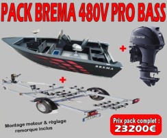 Gastes Nautic vous propose un pack neuf prêt à naviguer : Brema 480V Pro Bass + Tohatsu 50CV EFI + Remorque Oceane au prix de : 23200€