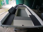 Caractéristiques technique du bateau : Pontage avant avec moquette et 1 Trappe / Pontage arrière avec moquette et 2 trappes d'accès / Plancher Bas avec moquette / Longueur : 3,95 m / Largeur : 1,75 m / Poids : 156 kg / Puissance maximale : 40 cv (arbre long) / Epaisseur de la coque : 1,6 mm